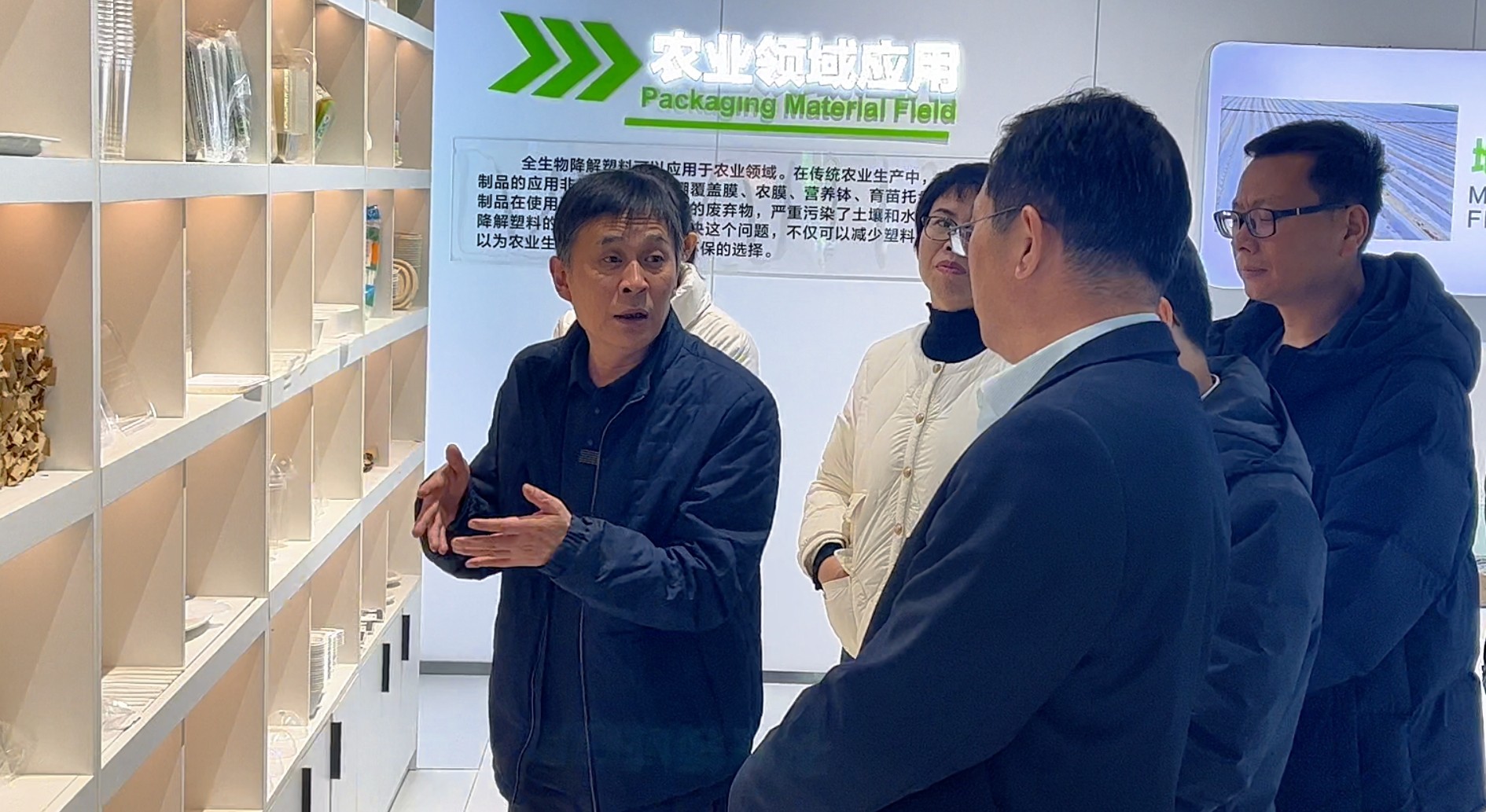 金院長一行參觀了可降解產品展廳和研發(fā)中心,公司產品所涉及到的五大領域、八大系列產品,給金院長一行留下深刻印象。金院長希望公司產品不斷優(yōu)化升級,實現(xiàn)產品多元化,持續(xù)提升市場核心競爭力。在公司研發(fā)中心,金院長在專家墻上看到公司強大的研發(fā)團隊,希望公司依托科研團隊,持續(xù)加強與科研院所的合作交流,早日將研發(fā)中心打造成省內領先、國內一流的可降解材料工程技術研發(fā)中心。